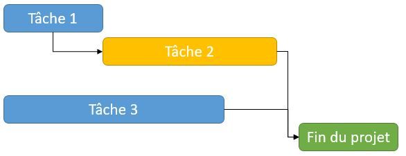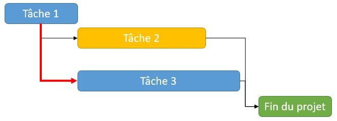 Les dépendances logiques ou structurelles entre les tâches : ces dépendances sont aussi prises en compte dans le calcul du chemin critique. Il s’agit des liens prédécesseurs – successeurs insérés dans les plannings pour montrer les relations de dépendances entre les activités (ex : avant d’élever les murs il faut couler les fondations).