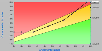 La principale action mis en œuvre pour réduire ce délai a été de planifier en Chaîne Critique le processus de soudage. A l’aide d’observation terrain, les équipes du projet ont créé un planning de cette étape de soudage qui permettait de tenir l’objectif de 8 réservoirs par an : 27 jours. Ce qui donne un planning Chaine Critique de 22 jours + 5 jours de buffer.